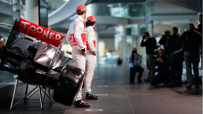 Jenson Button y Sergio Pérez han presentado el MP4-28 el monoplaza de Mclaren de fórmula 1 para la temporada 2013